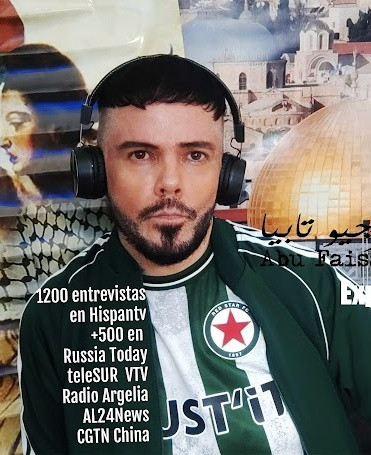 Biografía: Abu Faisal Sergio Tapia, director fundador del Diario Palestina Libération, escritor político experto sobre Asuntos de Palestina y Medio Oriente con mas de 1200 entrevistas en la tv de Medio Oriente y la tv Internacional, con estudios en Consultoría en Comunicación Política y Periodismo Político y artista visual de la causa palestina con mas de 2.000 obras de arte. Nacido el 30 de marzo (1971 Argentina) coincidencia del destino con el día de la tierra palestina, fue defensor desde los 13 años de la causa palestina y los derechos humanos del pueblo palestino, en su infancia en la Oficina de Información Palestina, que seria la primera delegación-representación de la OLP en Argentina en los años 80. Como intelectual fundo el 1º diario de noticias palestinas en español y árabe «Palestina Libération» y su cadena de noticias palestinas TV, así como director fundador de agencias de noticias palestinas independiente, la ANPEx (junto al 1º embajador de Palestina en Argentina Suhail Akel) y autor de artículos y ensayos políticos sobre Palestina y Oriente Medio. Escritor político Experto sobre Asuntos de Palestina y Oriente Medio en diversas cadenas internacionales de noticias de tv y radio de Medio Oriente, Hispantv (Desde 2012 1º Experto sobre Asuntos de Oriente Medio de la cadena de tv y artículos de opinión), RT (Desde 2016), TelesurTv (Desde 2012), UNRadio Universidad Nacional Colombia (Desde 2015), Radio Algerie Internationale (Desde 2016), La Radio del Sur (Desde 2016), cada martes a las 15 horas de Argelia, se emite desde Argel su programa Arte y Cultura del Mundo por Radio Argelia Internacional desde el año 2020, donde el arte asume su compromiso intelectual revolucionario con la causa del pueblo palestino, desde los intelectuales y escritores anticolonialistas comprometidos con sus pueblos como Frantz Fanon por la liberación de Argelia contra el colonialismo francés, y el escritor palestino Ghassan Kanafani entre otros, autor de la «Declaración de Argel: Arte en Resistencia por Palestina Libre», verdadero manifiesto del compromiso del artista intelectual, con su tiempo, que se leyó desde los estudios en Argel de la Radio Argelia Internacional, asi mismo ha sido escritor miembro honorario de la Federación General de Sindicatos Palestinos GPGFTU y ser el primer escritor latinoamericano de la causa palestina y defensor de los derechos humanos en haber realizado una huelga de hambre de 53 días en el 2013 en solidaridad con los presos políticos palestinos, mujeres y menores detenidos (coordinado con los organismos de derechos humanos palestinos en la Cisjordania Ocupada) y haber solicitado el intercambio de su propia vida por la de un compañero palestino. Fue el Presidente del Consejo Internacional Geopolítico sobre Medio Oriente - Geopolitical International Council over Middle East y su Escuela de Gobierno. Fundador del Tribunal Internacional sobre la Infancia afectada por la Guerra y la Pobreza (Tribunal de Conciencia que dicto la 1º Sentencia Internacional de Genocidio sobre la Infancia Palestina en el 2009) de la Mission Diplomatique Internationale Humanitaire RWANDA 1994, finalista del Premio Nacional de Paz Colombia, en el 2006. Conferencista sobre Asuntos de Palestina y Oriente Medio, Derechos Humanos y Genocidio. Su compromiso con la causa palestina y los derechos humanos del pueblo palestino, ha sido una constante en su vida y su obra, y su labor ha sido reconocida en diversas instancias internacionales.